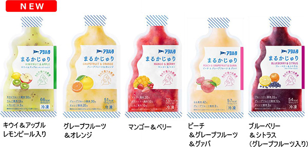 アヲハタ株式会社(本社:広島県竹原市、代表取締役社長:上田敏哉、以下アヲハタ)は、自分好みにほぐしながら食べるパウチ入り冷凍フルーツ「アヲハタ まるかじゅり」シリーズから「キウイ&アップル レモンピール入り」を新発売します。また、本シリーズ既存4品の賞味期間を25年11月製造分から順次24カ月から36カ月に延長します。